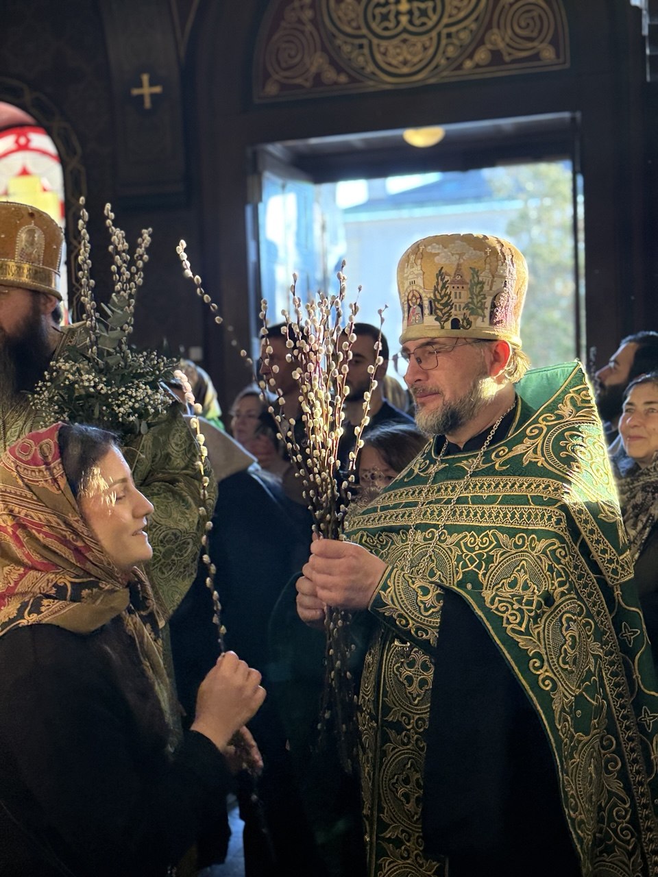 Après avoir béni des rameaux de palmier et des branches de saule lors des vigiles le samedi soir, le clergé et les fidèles les portèrent durant la Divine Liturgie du dimanche matin, en mémoire des rameaux déposés sur le chemin que prit le Seigneur lors de Son entrée dans la mère des cités, la sainte Jérusalem. Les acclamations: « Hosanna au plus haut des cieux! Béni soit Celui qui vient au Nom du Seigneur! » retentissaient dans les hymnes du jour, admirablement chantées par le chœur renommé de la cathédrale.