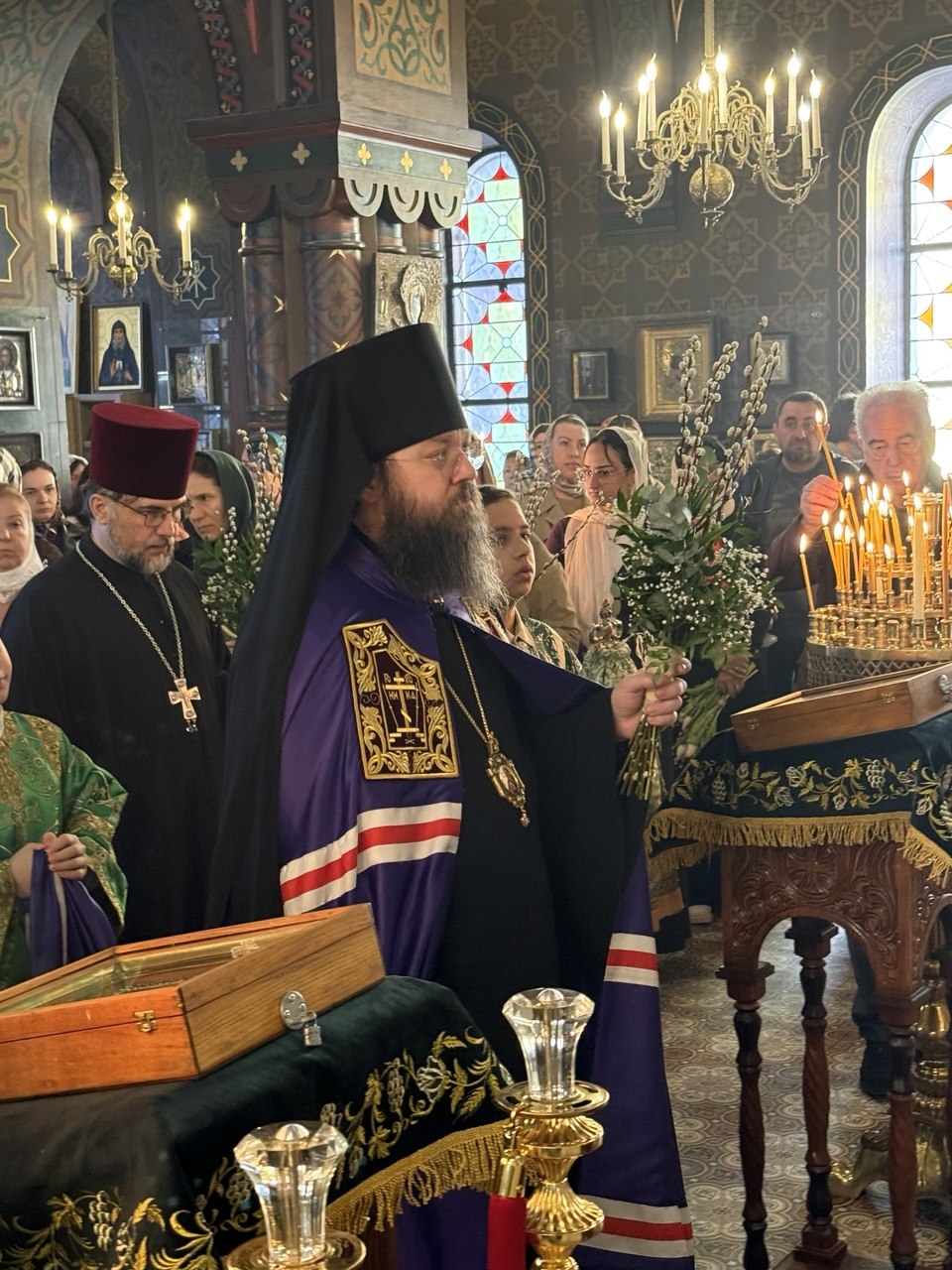 Pendant la Divine Liturgie, Vladyka Irénée prononça une homélie pastorale sur le sens du jour, notant que le Seigneur entre dans chaque cœur humain avec autant de signification qu’Il entra dans Jérusalem elle-même. « Car la cité du cœur, — prêchait l’archipasteur, — devenue demeure de Dieu par le saint Baptême, n’est pas moins glorieuse que la mère des cités, la sainte Jérusalem ». Soulignant que cela demeure vrai malgré notre faiblesse et notre péché, Son Excellence poursuivit: « L’amour de Dieu est conduit volontairement des portes de Jérusalem jusqu’au bois de la Croix — et au-delà encore, jusque dans la mort au tombeau. Telle est la réponse du Seigneur à notre péché, à notre faiblesse et à notre trahison. Et c’est cela qui conduit à Sa plus grande gloire et à notre unique salut: la résurrection d’entre les morts et le vide du tombeau ».