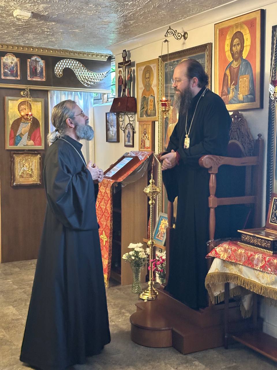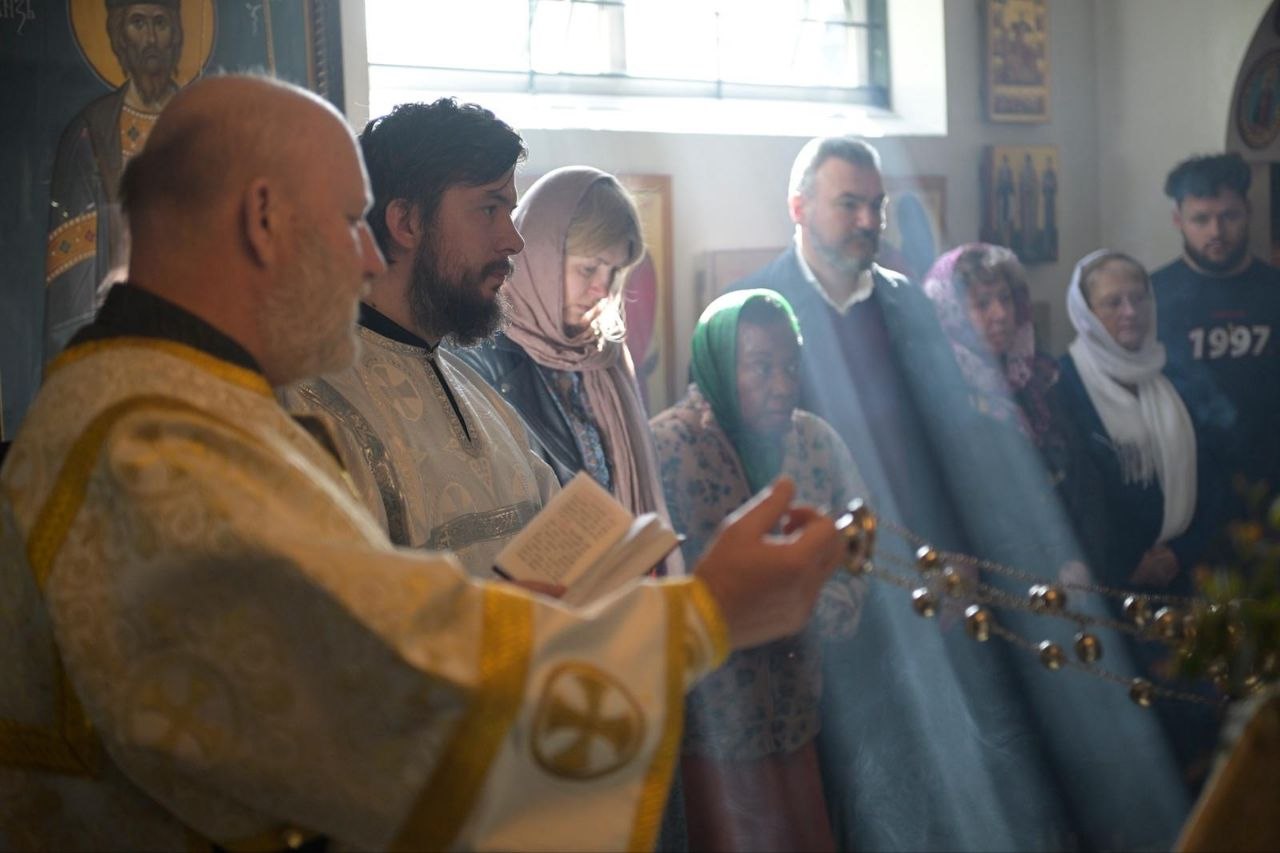 В воскресное утро Владыка Ириней был встречен хлебом и солью по древнему обычаю и возглавил Божественную литургию в сослужении иерея Спасимира, а также диаконов Андрея Борисаса и Павла Лисицина, прибывших в Норидж вместе с Его Преосвященством.