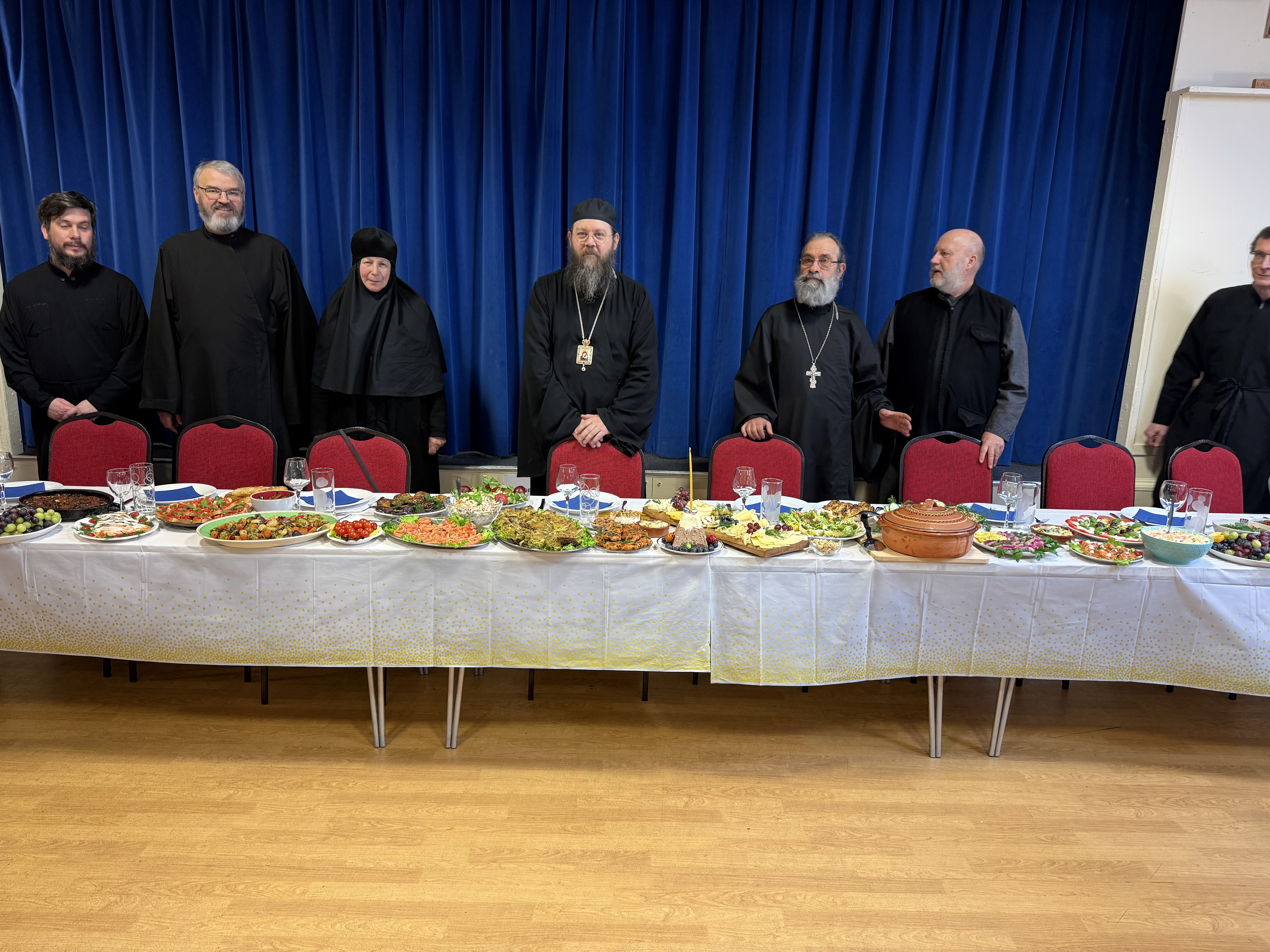 По окончании Божественной литургии духовенство и верные собрались в близлежащем зале на праздничную трапезу и программу в честь архипастырского посещения. Владыка пребывал со своей паствой в течение нескольких часов, после чего отбыл, возвращаясь в Лондон.