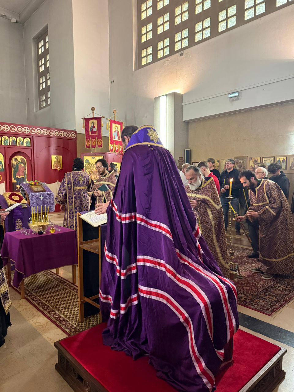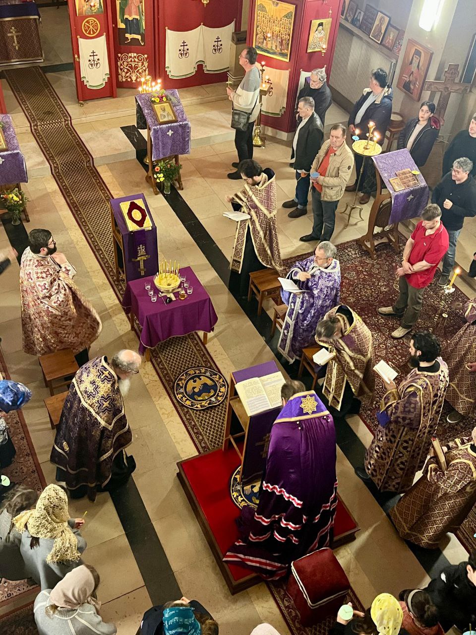 19 ФЕВРАЛЯ / 4 МАРТА 2026 г.: Въ среду второй седмицы Великаго поста Преосвященный епископъ Лондонскій и Западно-Европейскій Ириней прибылъ въ Ліонъ, Франція, чтобы возглавить чинъ общаго елеосвященія въ приходѣ святагo праведнаго Іоанна Русскаго. Его Преосвященству сослужили мѣстные священнослужители: протоіерей Квентинъ де Кастельбажакъ и діаконъ Мурманъ-Гавріилъ Гигаури, а также прибывшіе монашествующіе и священники изъ Румынскаго Патріархата, Корсунской епархіи и Парижской Архіепископіи.