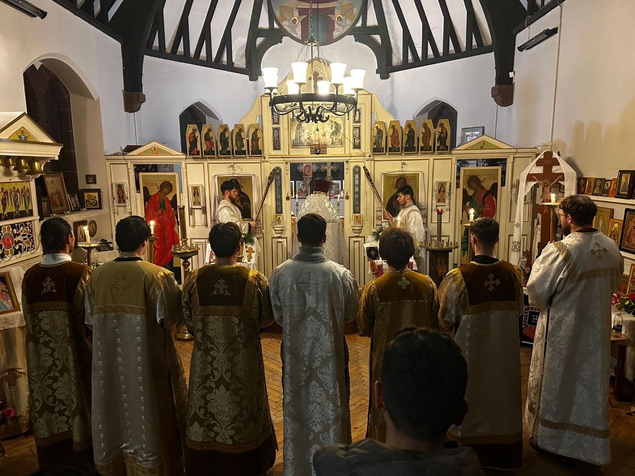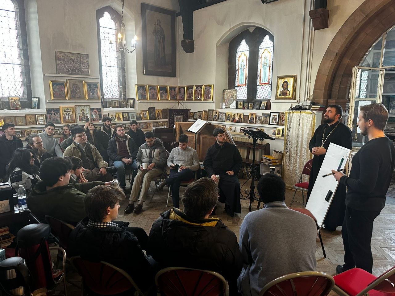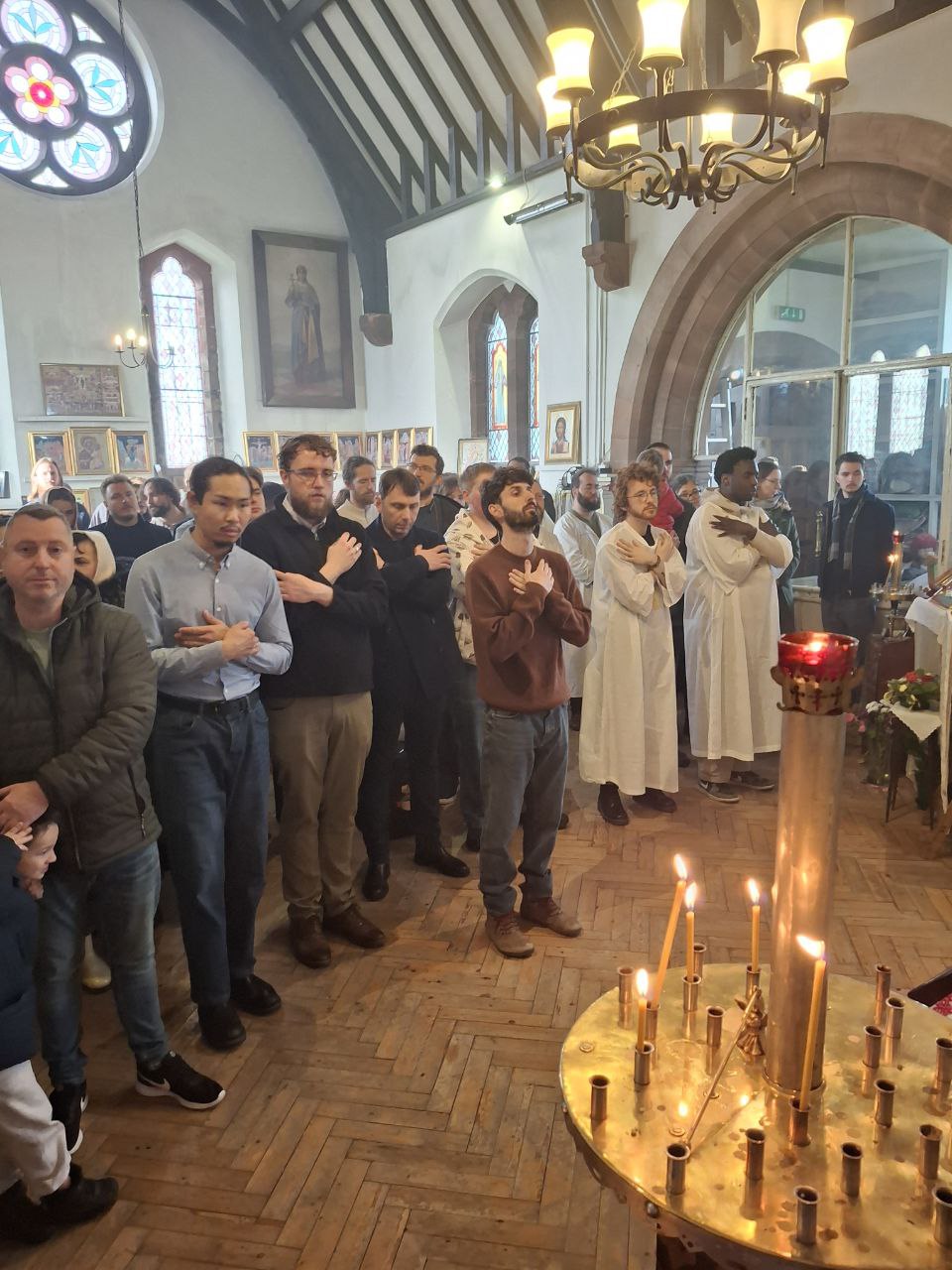 Молодые люди прибыли в Мерсисайд в пятницу 10 / 23 января и были тепло встречены священником Иустином Венном и чтецом Серафимом Уильямсом. Отец Иустин произнес первую беседу, посвященную иконографии; вторую беседу — о Лице Христа и о том, как мы призваны служить Ему, — провел настоятель прихода, протоиерей Павел Эллиотт. После этого была совершена вечерня, возглавленная отцом Павлом при участии добровольных прислужников и чтецов.