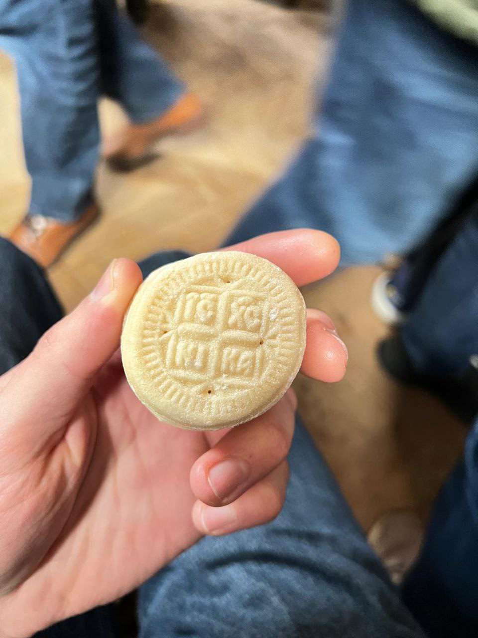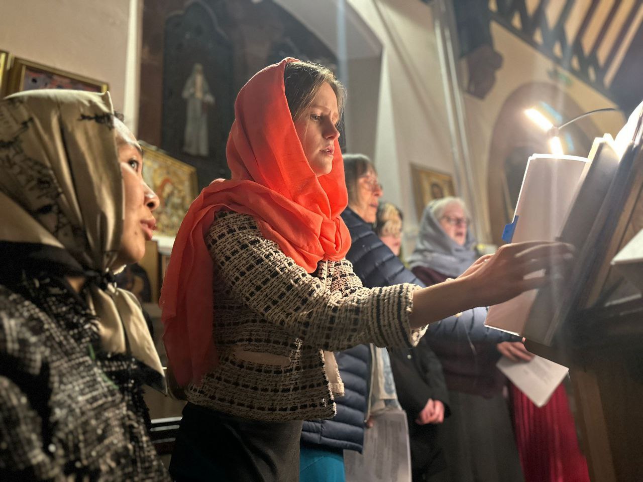 The next day yet more young people gathered for the Divine Liturgy. Mariia Rak assembled a volunteer choir of female singers and Fr Paul gathered a team of 11 servers to assist him in the Altar and gain experience. After lunch, again provided by the parish youth committee, there were two workshops running concurrently: Archpriest Vyacheslav Lyahovsky led a workshop on serving in church and Helena Marsden, of the parish sisterhood, led a workshop on prosphora baking at Fr Paul's home. Both workshops were well received by the young people.